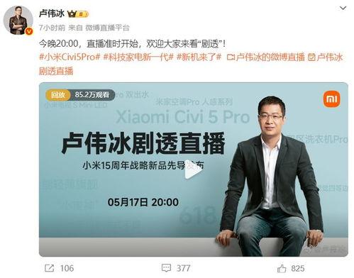 在视频中,卢伟冰透露,小米即将发布一款全新的手机。这款手机将搭载最新的处理器,配备超高的像素摄像头,并且在外观设计上也将带来颠覆性的改变。听到这里,你是不是已经迫不及待想要一睹为快了呢?